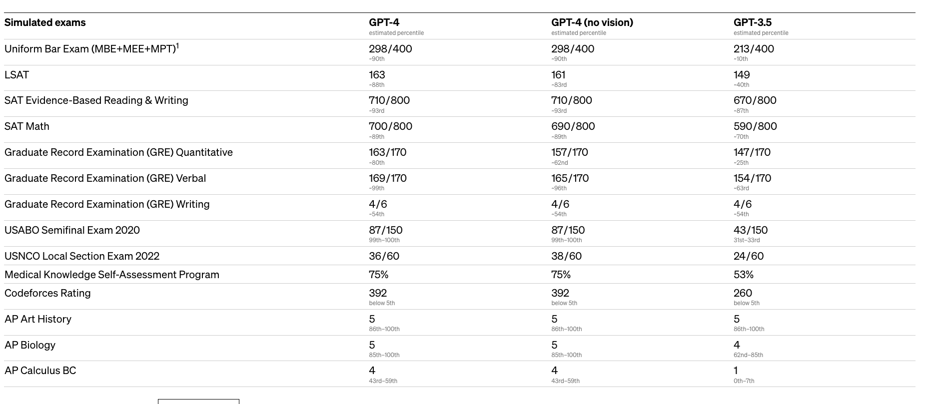I didn't know before that OpenAI benchmarks its models' performance against standardized tests: