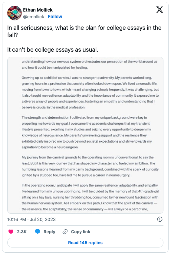 ChatGPT writes a college entrance essay (via my pal Sam S.):