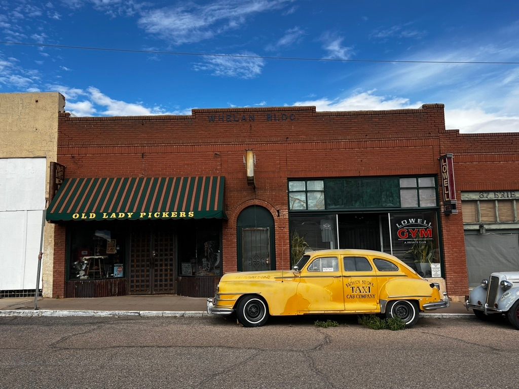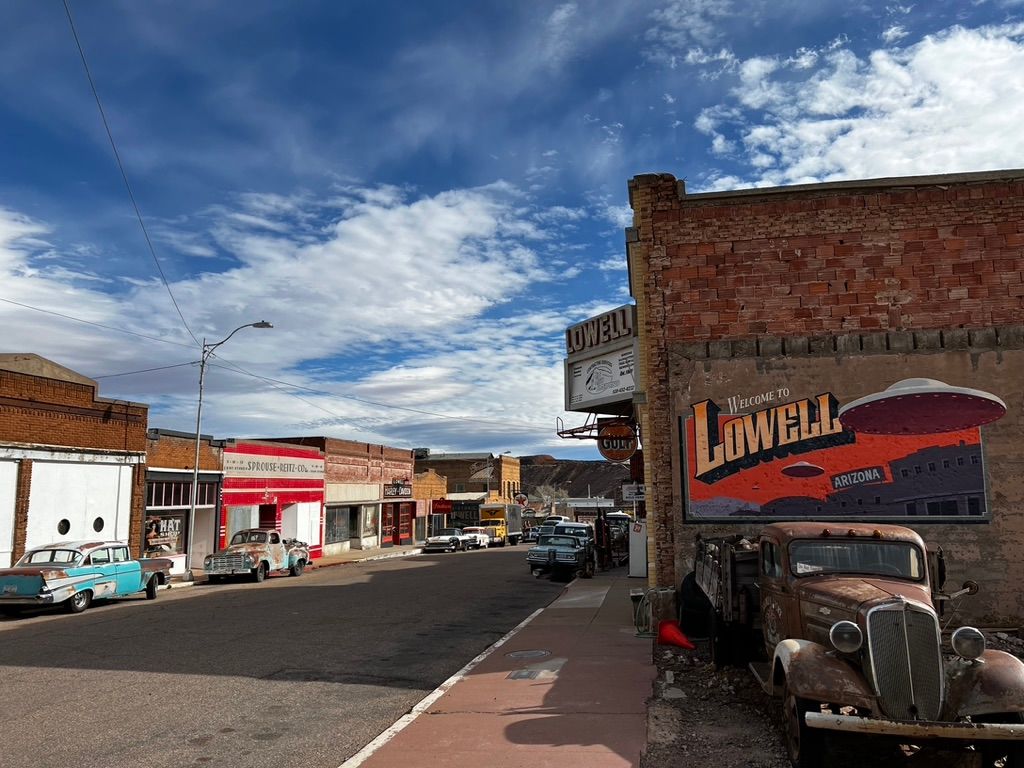 If you walk east around the Lavender Pit, you get to the tiny town of Lowell, which is mostly deserted apart from a breakfast joint and a couple of shops.