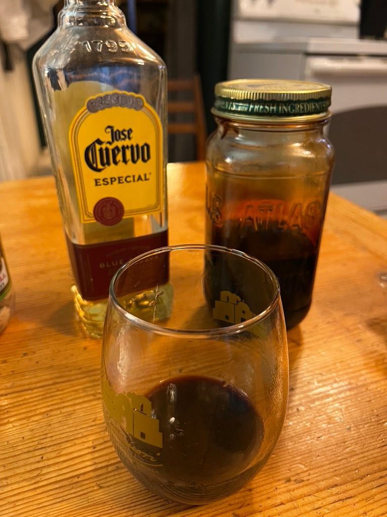 We ascend the rest of the stairs to the house where Mike makes us an ad-libbed cocktail of Saguaro syrup and tequila. The syrup, which he watched a Native American woman concoct from the cactus in a pot in the desert, looks and tastes much like molasses. Though it's a deep brown and sort of viscous, the mixture is quite good. The sweetness blunts the edge of the Jose Cuervo.