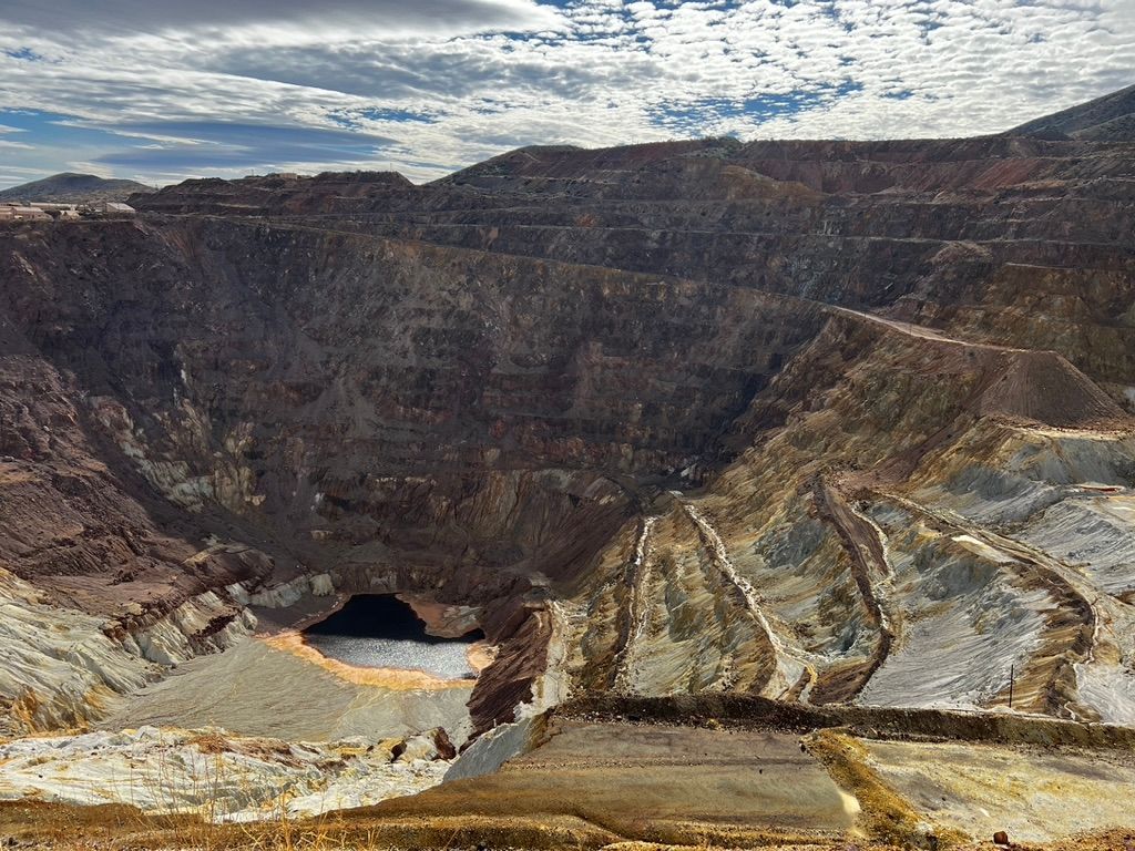 The town's mining past is still on-display everywhere. Big concrete concentrators sit idle, as do the giant metal headframes. But the biggest reminders are the vast pits.